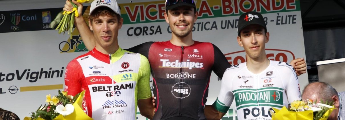 27/04/2026 – Ancora un podio di prestigio per il Team Beltrami TSA-Tre Colli, che ieri alla 82^ Vicenza-Bionde, classica Nazionale per Under 23, ha piazzato Davide Basso al secondo posto sul traguardo di Bionde di Salizzole (Verona), preceduto solo da Alessio Menghini. La gara si è risolta con una volata di circa 20 corridori. L’atleta trevigiano classe 2004, alla prima stagione tra le fila del Team Beltrami TSA-Tre Colli, conferma le sue qualità in gare di questo tipo, oltre ad una solida continuità di rendimento (è il terzo secondo posto che coglie quest’anno).