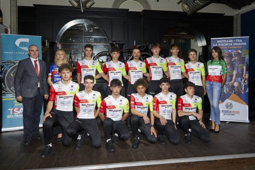 21/01/2024 – Tredici atleti, di cui sei nuovi, compresi quattro provenienti dalla categoria Juniores: è la composizione del Team Beltrami TSA – Tre Colli per la stagione 2024. La squadra Continental emiliana è stata presentata ieri sera alla discoteca “Sali & Tabacchi” di Reggio Emilia, nel corso di una serata che ha visto sfilare sul palco tutte le squadre sponsorizzate dalla Beltrami TSA, tenute a battesimo da Graziano Beltrami.