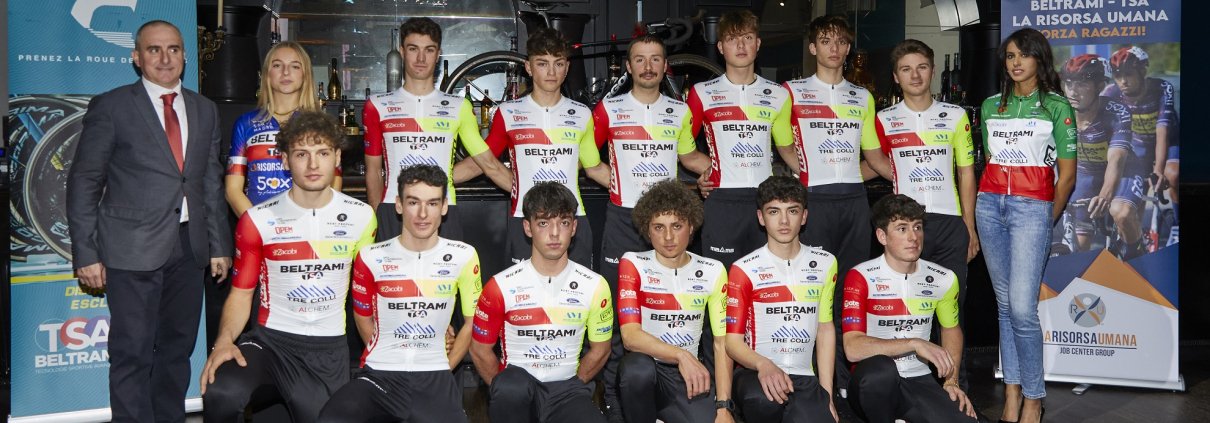 21/01/2024 – Tredici atleti, di cui sei nuovi, compresi quattro provenienti dalla categoria Juniores: è la composizione del Team Beltrami TSA – Tre Colli per la stagione 2024. La squadra Continental emiliana è stata presentata ieri sera alla discoteca “Sali & Tabacchi” di Reggio Emilia, nel corso di una serata che ha visto sfilare sul palco tutte le squadre sponsorizzate dalla Beltrami TSA, tenute a battesimo da Graziano Beltrami.